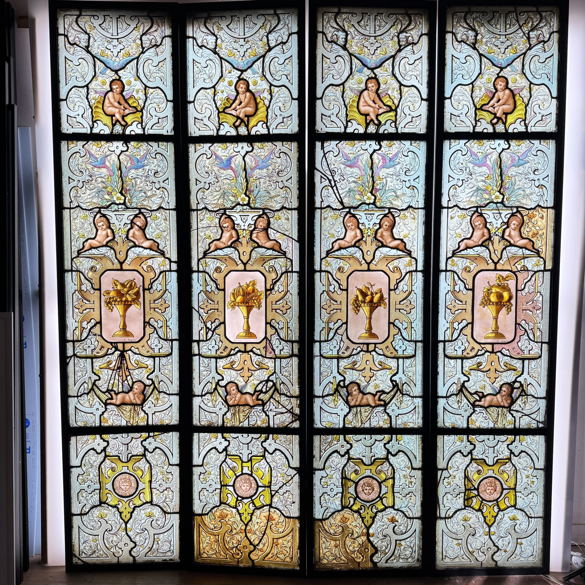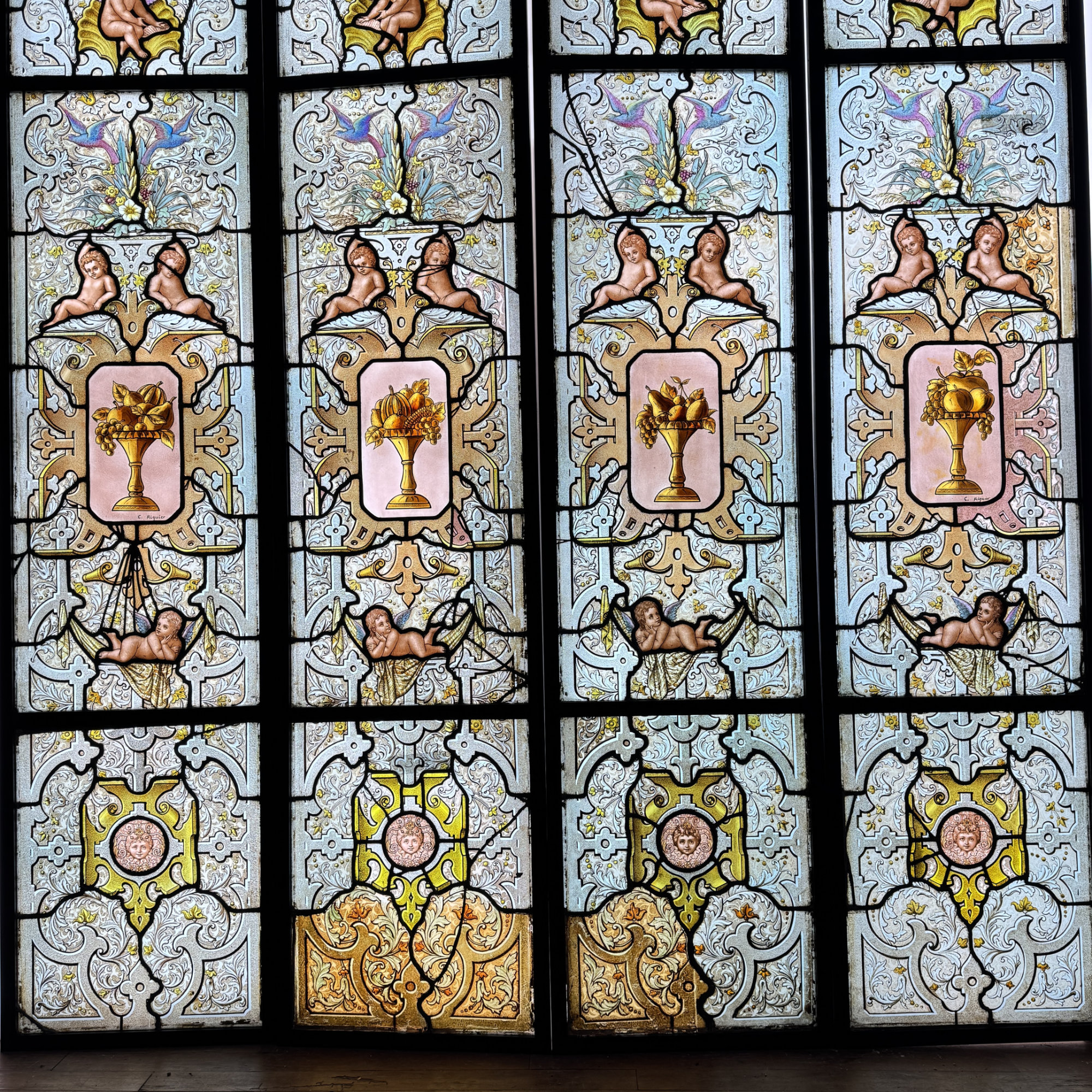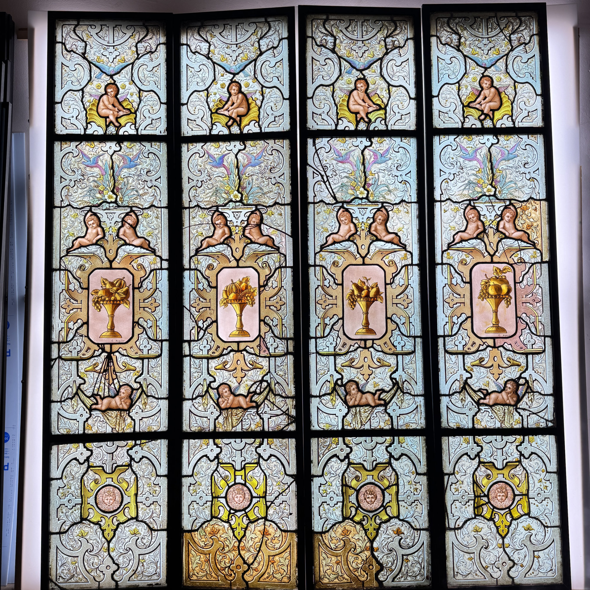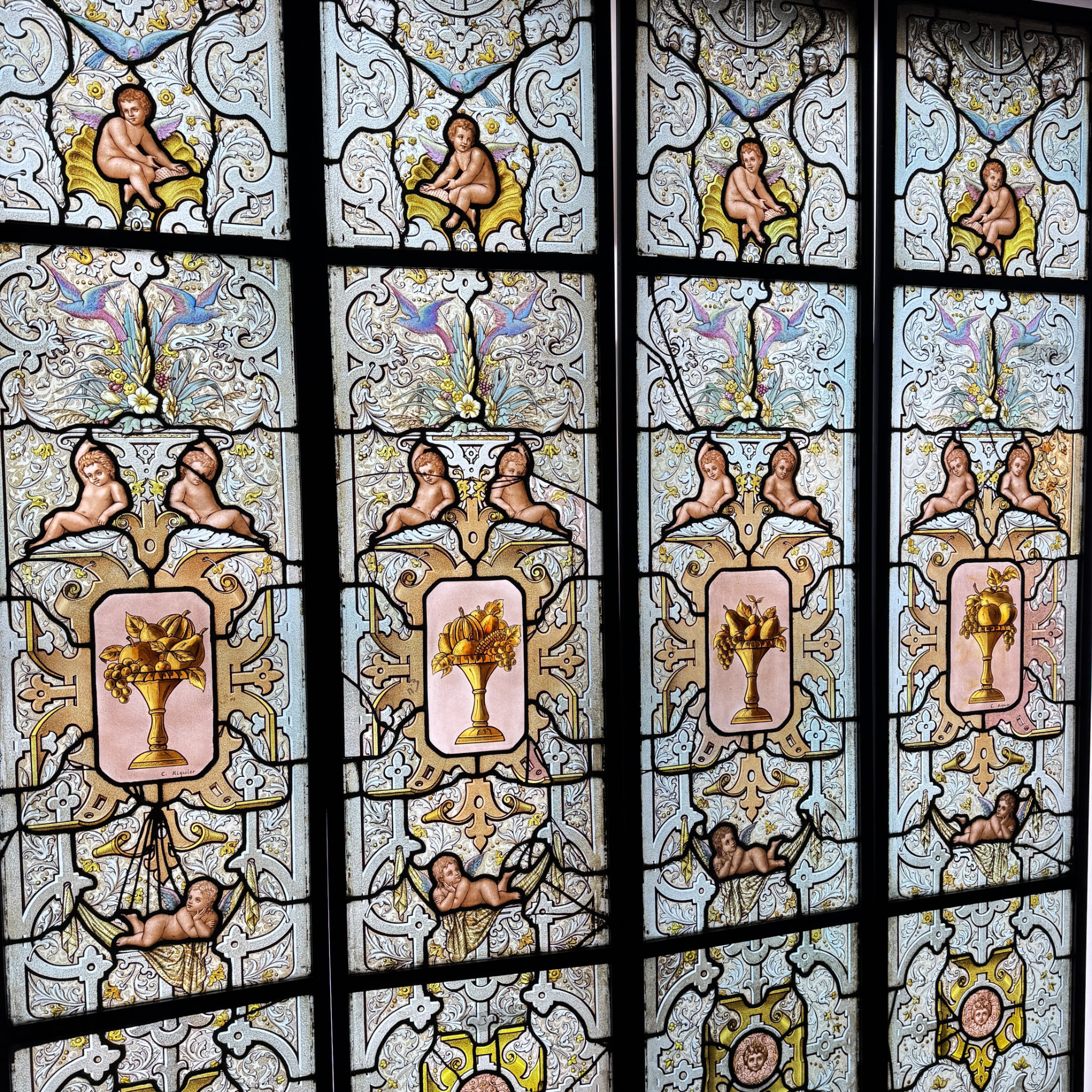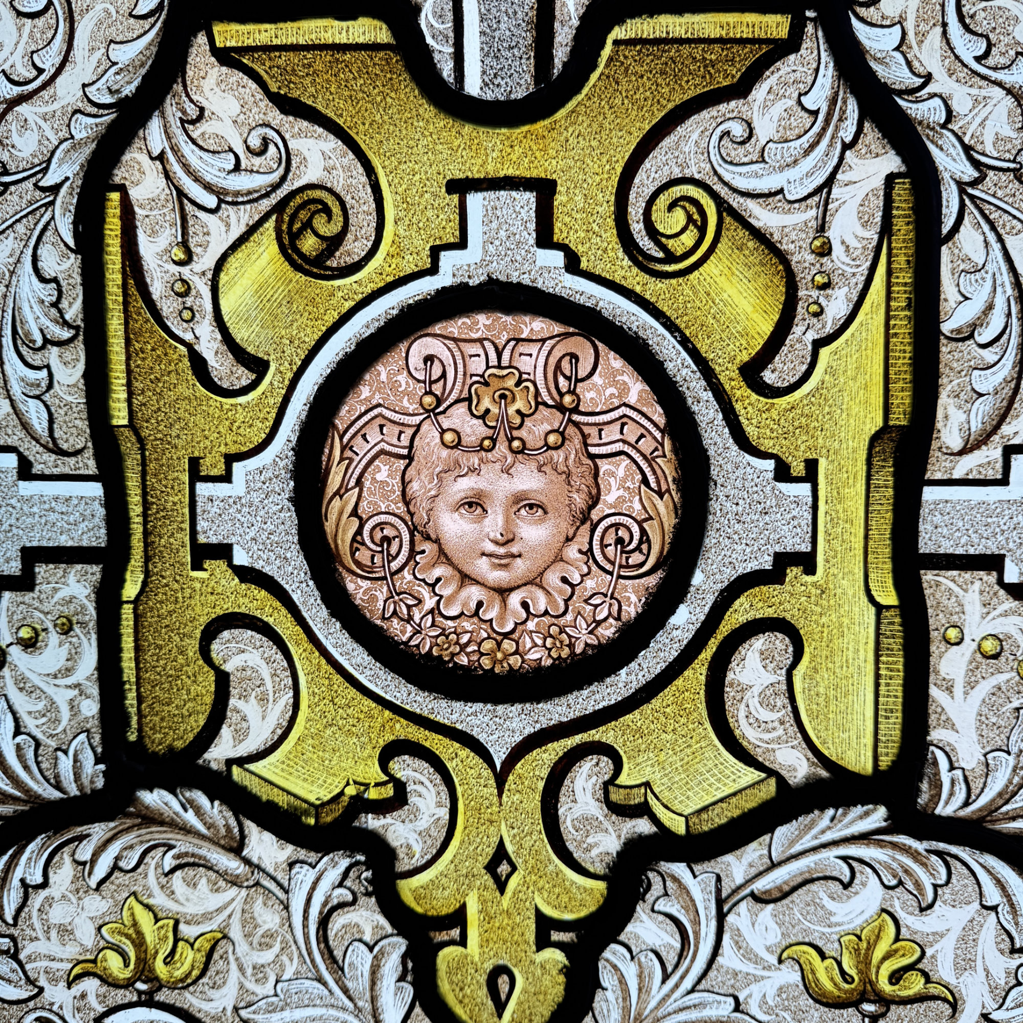 Claude Riquier (1835-1878) est un peintre verrier parisien bien qu’originaire d’Auvergne. Elève de E. Didron et collaborateur du cartonnier Louis Steinheil, il est également connu sous le nom de Riquier-Vellaud suite à son mariage avec Anne-Elise Vellaud en 1859. Il réalise des verrières pour l’église St Etienne du Mont (histoire de Sainte Genevièvre en 1869 et en 1877), on retrouve également son travail à Poitiers avec un vitrail pour l’hôtel de ville consacré à Aliénor d’Aquitaine en 1874, et à La Membrolle sur Choisille dans l’église Notre-Dame des Eaux. En 1872, il publie des annonces publicitaires le présentant comme “créateur de vitraux civils d’appartements”. En 1878, il participe à l’Exposition Universelle.