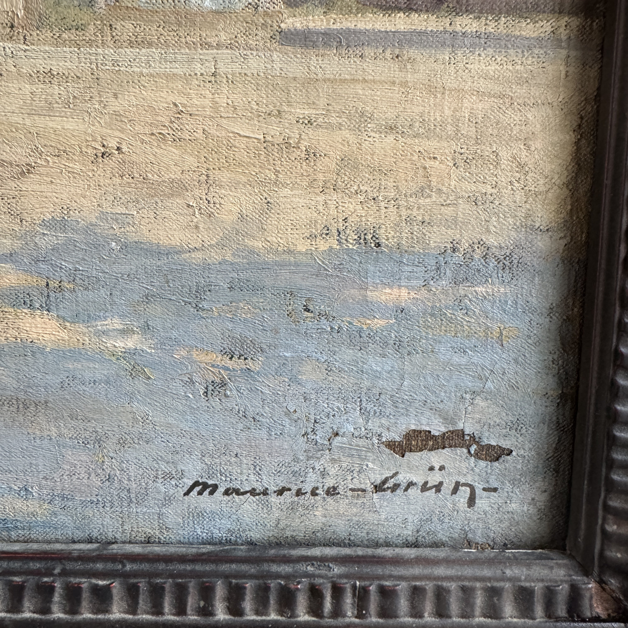Maurice Grun est né à Réval (actuellement Tallinn, Estonie) en 1870 et mort à Saint Cloud en 1947. Peintre russe, il est nationalisé français en 1910. Elève de Jules Lefebvre, Benjamin Constant et Tony Robert Fleury à l’Académie Julian à Paris de 1890 à 1893. Il voyage aux Etats-Unis et au Brésil où il enseigne à l’Escola de Belas Artes de Salvador de Bahia nouvellement fondée. De retour en France, il séjournera à Paris mais à plusieurs reprises également à Concarneau où il a peint cette vue. Il expose régulièrement au Salon des Artistes Français où en 1911 il reçoit une médaille de troisième classe.