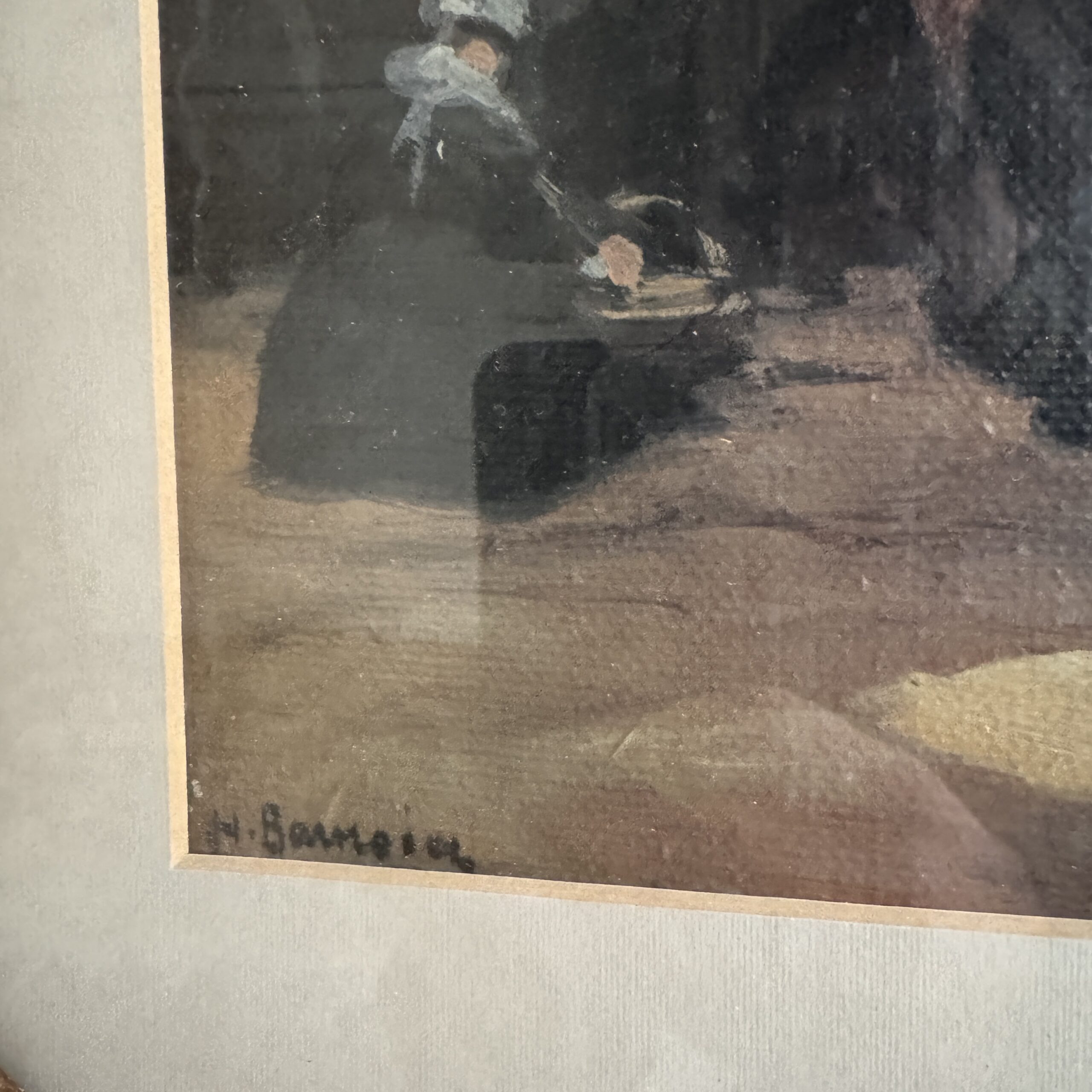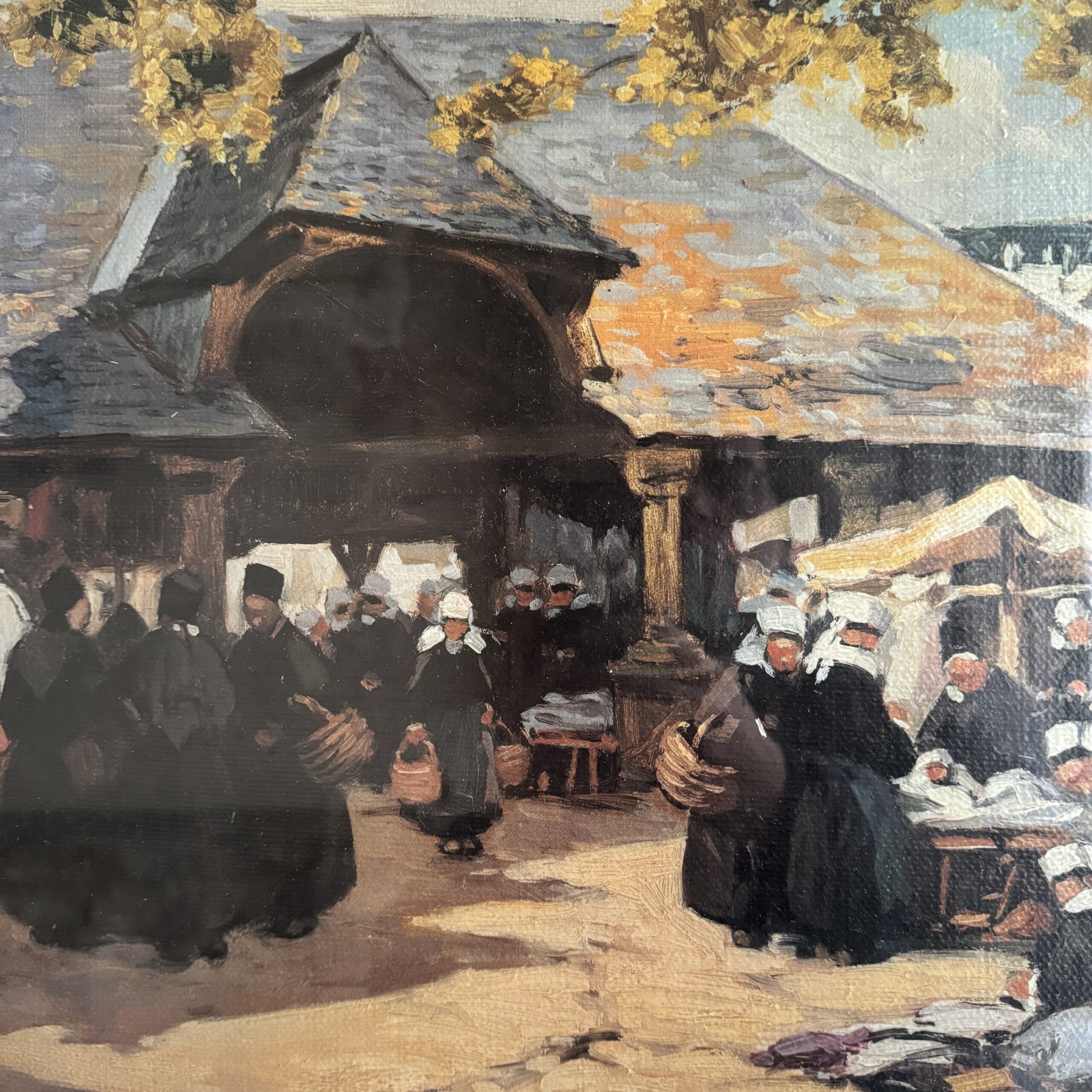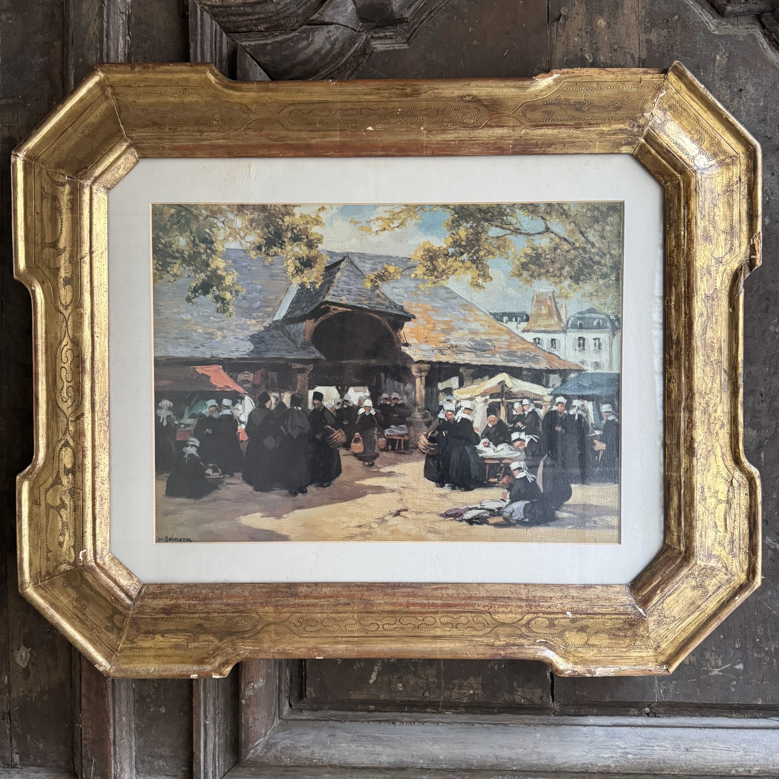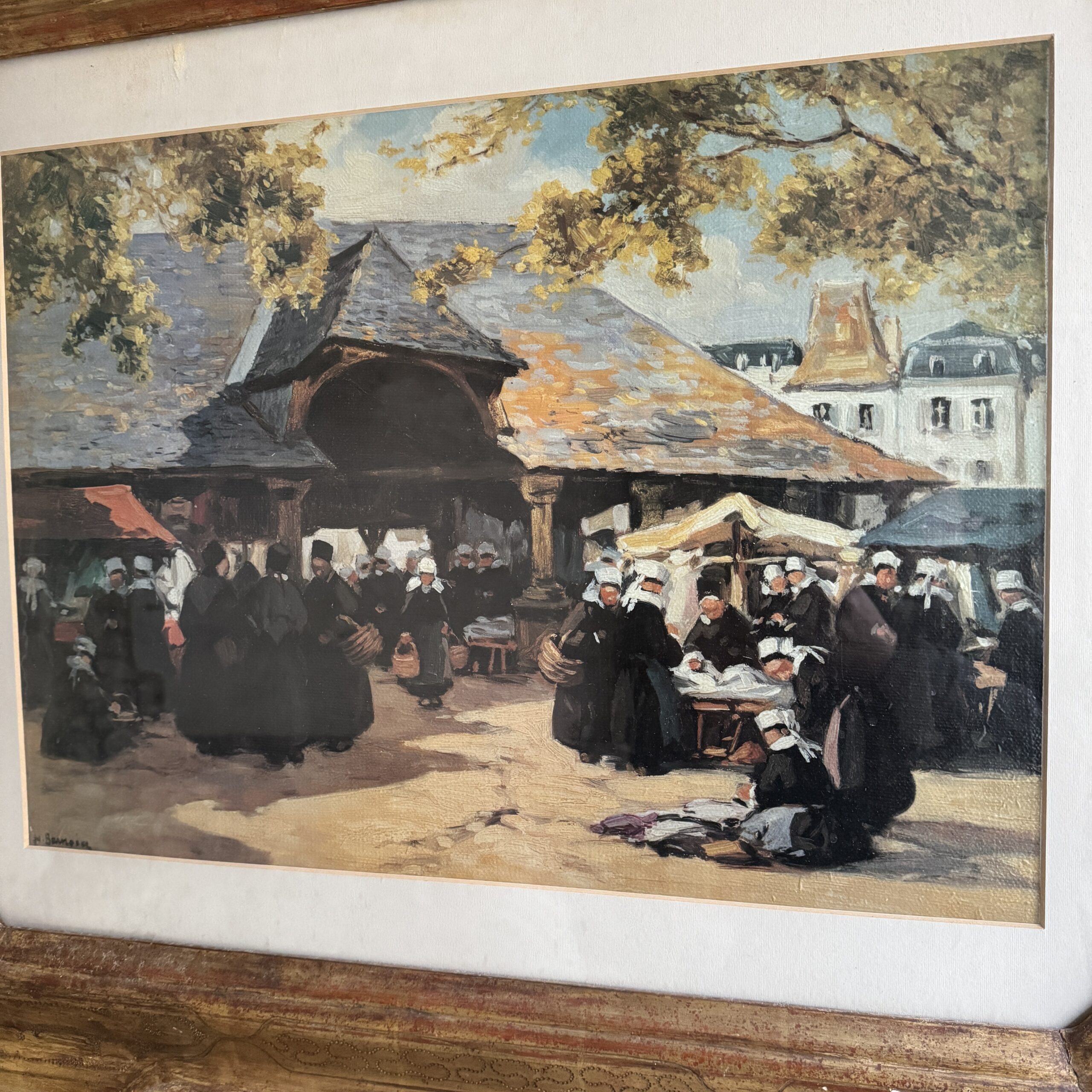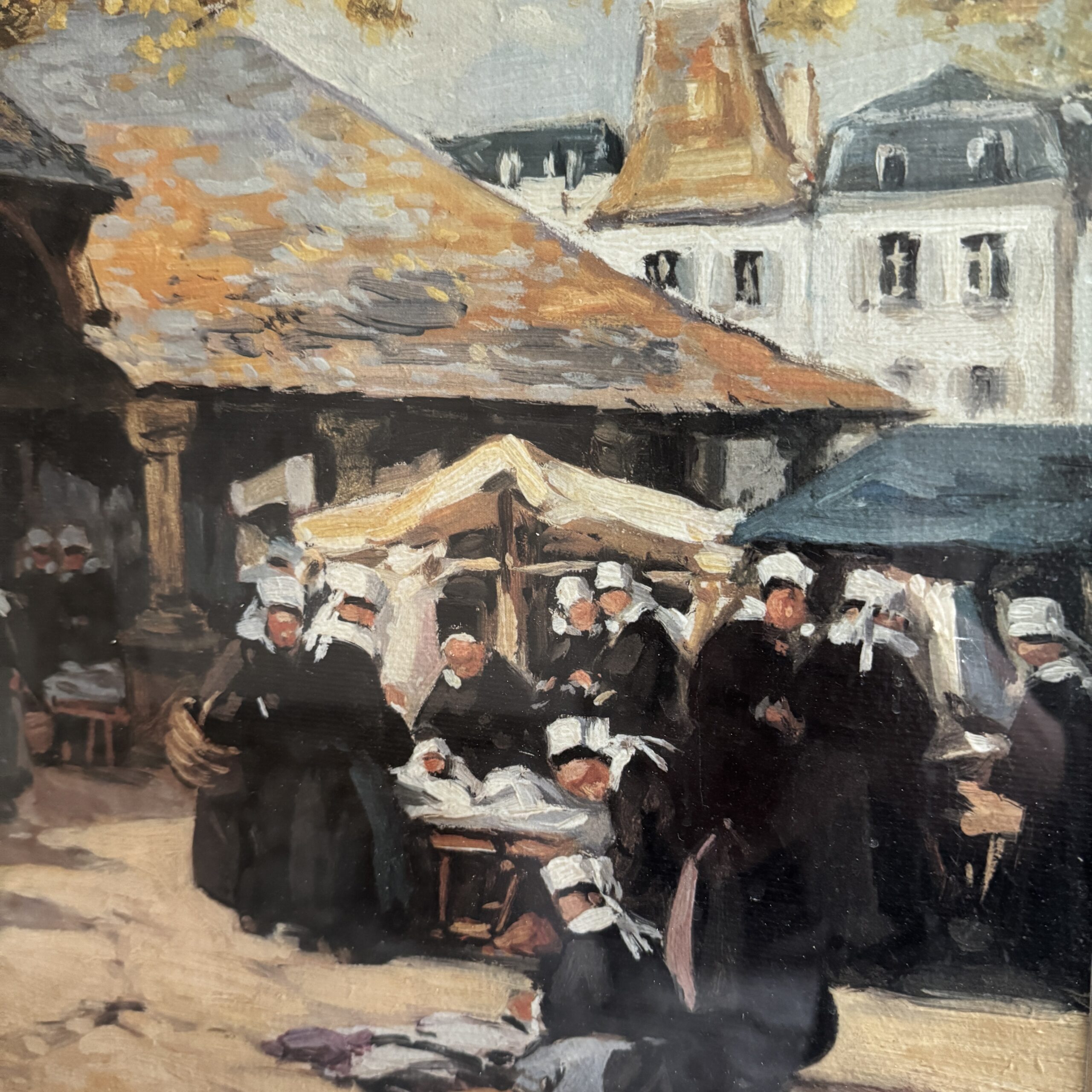 Le marché sous les halles par Henri Barnoin (1882-1940), sujet similaire au musée de Faouët.