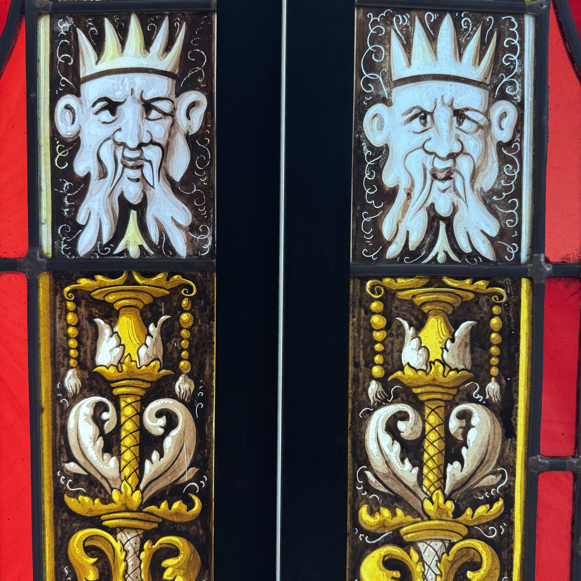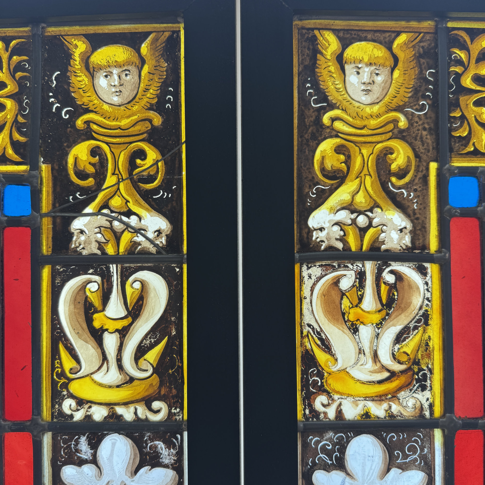 Châssis en bois noir, l’ensemble est en parfait état. Ils ont été entièrement remontés en plomb de manière traditionnelle.